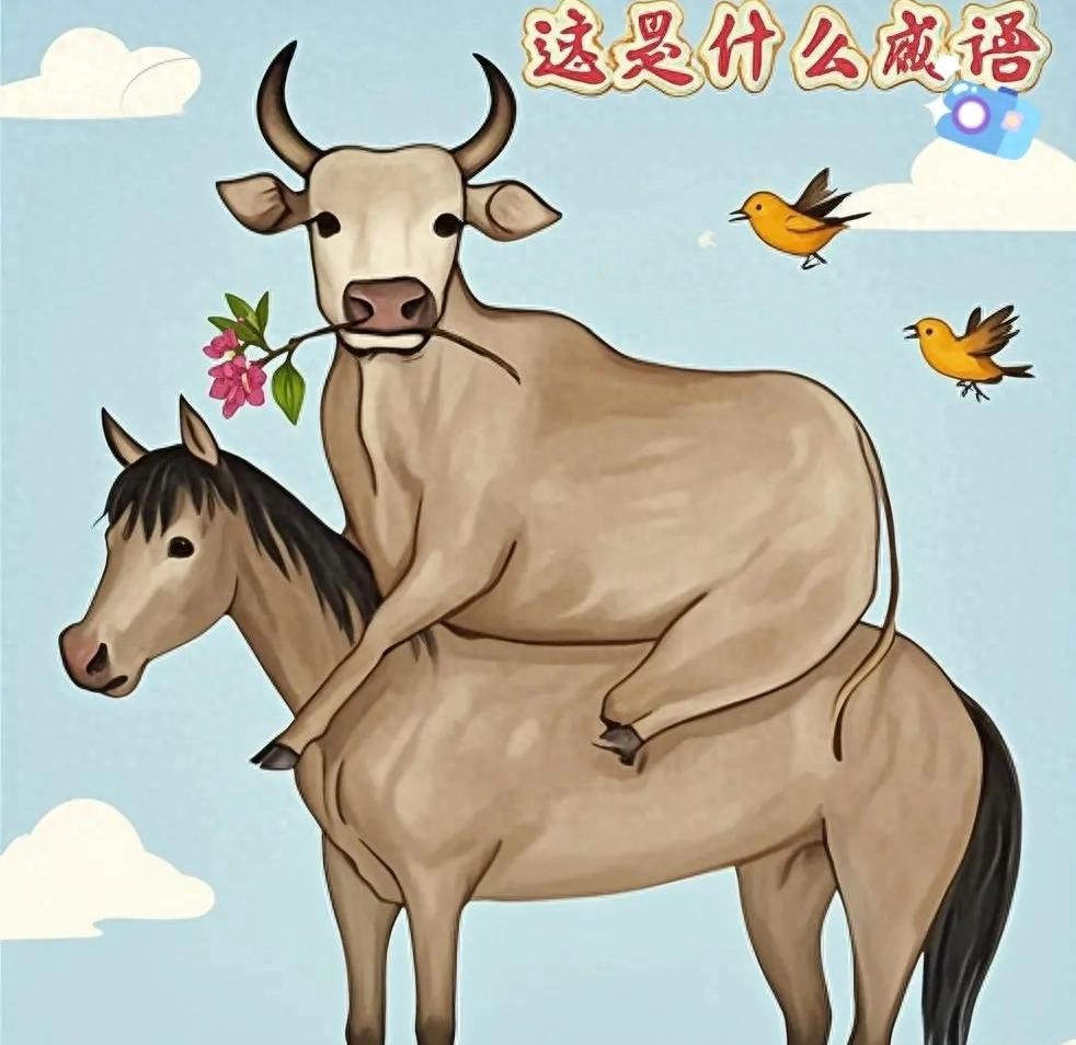哎呀,有一张图啊,把大家都难住了!你瞧瞧,马背上竟然骑着一头牛,这到底是哪个成语呀?快来动动脑筋,咱们一起猜猜,牛和马放在一起,能是个啥有意思的成语呢?