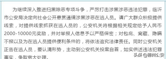 山东公安:涉黑涉恶!山东临沂警方悬赏通缉33名在逃人员