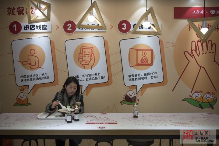 近日,杭州首家无人智慧餐厅正式落地五芳斋。它位于文三路华星时代广场楼下。和普通餐厅相比,这家餐厅最大的特点是全程“无人化”自助服务:点单、下单、取餐,都由顾客自己完成。“无人智慧餐厅”并非真正的“无人”,它的核心意义是对传统业务流程进行优化革新。