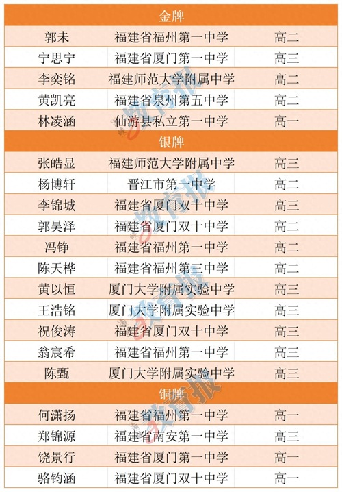 数奥国赛!福建学子5金11银4铜!他们来自福州一中、师大附中、福州三中......