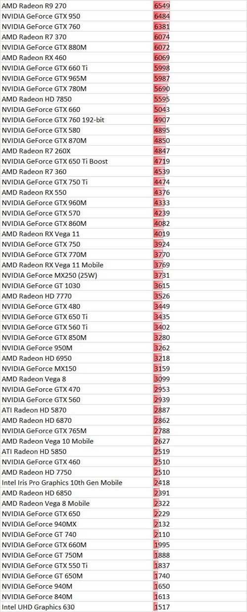 用FS分数,很全的意思时难免有遗漏的全部>_<,如果有缺,请回复,我补~ 跑分包含台式机和笔记本,喜欢的话点赞收藏关注我哦~ 有消息称老黄又鳖大招了,安培显卡性能加50%,功耗减半,在显卡领域AMD还不YES,AMD加油!!! 过年了不买张显卡来扫个雷和跑跑分~