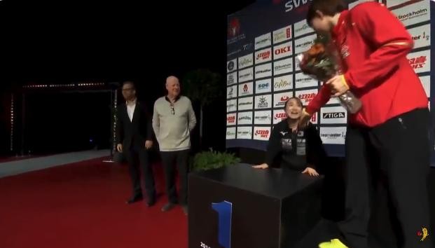 笔者印象最深刻的,莫过于18年的瑞典公开赛,当时伊藤美诚强势击败了国乒大将朱雨玲夺得单打冠军,进入颁奖典礼时,伊藤美诚却遭遇了尴尬的一幕。