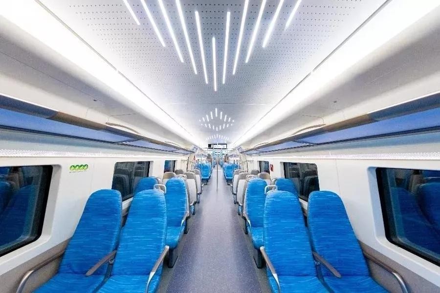 在车厢内,乘客可以享受到宽敞的座位、便捷的换乘服务以及丰富的信息娱乐系统。