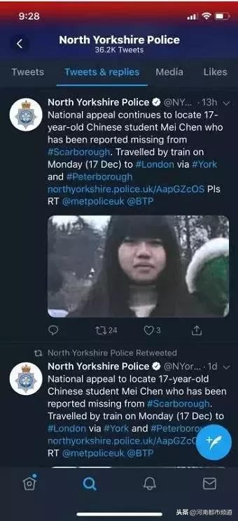 17岁中国女生在英已失联超过3天,曾说要去见陌生网友……