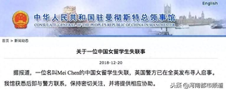 警方称,陈梅所在的寄宿家庭因担心她的安全,于12月17日15时04分向警方报告失踪。陈梅的寄宿家庭表示,她之前曾提到过去伦敦,与一个不相识的网友见面。
