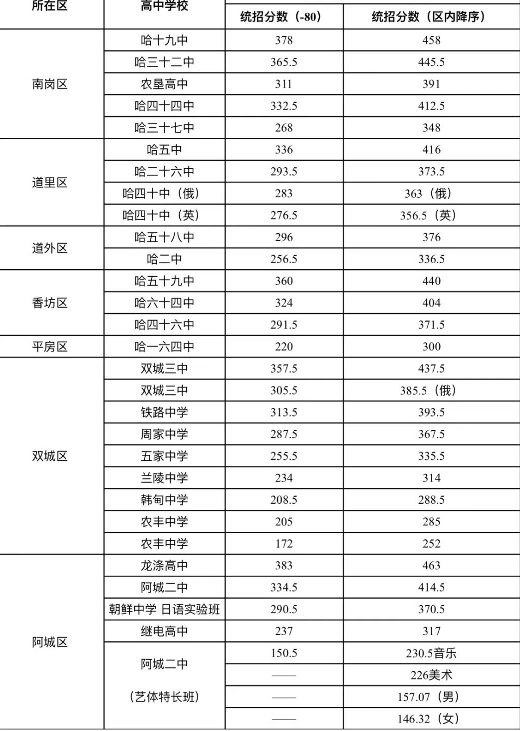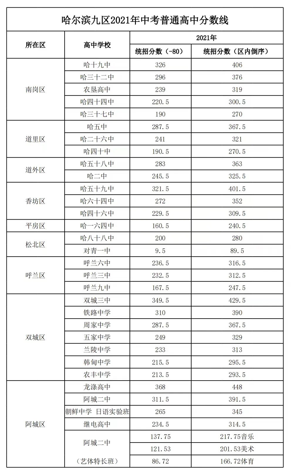 哈尔滨普通高中录取分数线公布!分数线较去年均有提高