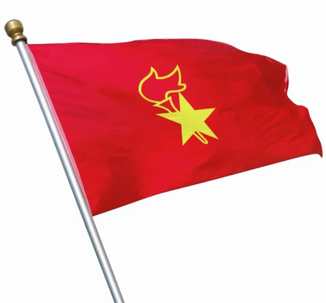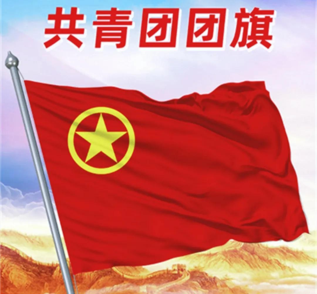3. 中国共青团团旗 :中国共产主义青年团的团旗是红色背景,左上角有一个黄色圆圈,里面有一个黄色五角星。这个黄色五角星象征着中国共产主义青年团在共产党的领导下。