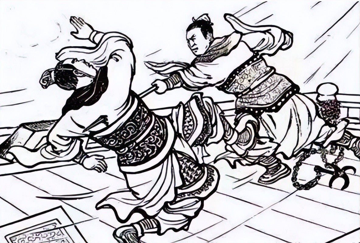 聂政拿着宝剑来到韩傀家,韩傀正坐在家里,手持兵器保护他的侍卫很多,聂政毫不畏惧,以长虹贯日之势直接刺死了韩傀。旁边的侍卫都来不及反应,韩傀已经死了。
