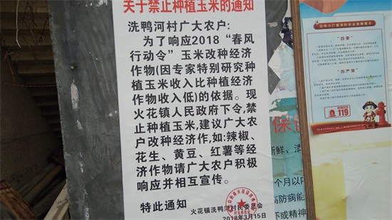 近日,为响应政府各大农村扶贫政策,在贵州农村到处都张贴有“禁止种植玉米”的通知。
