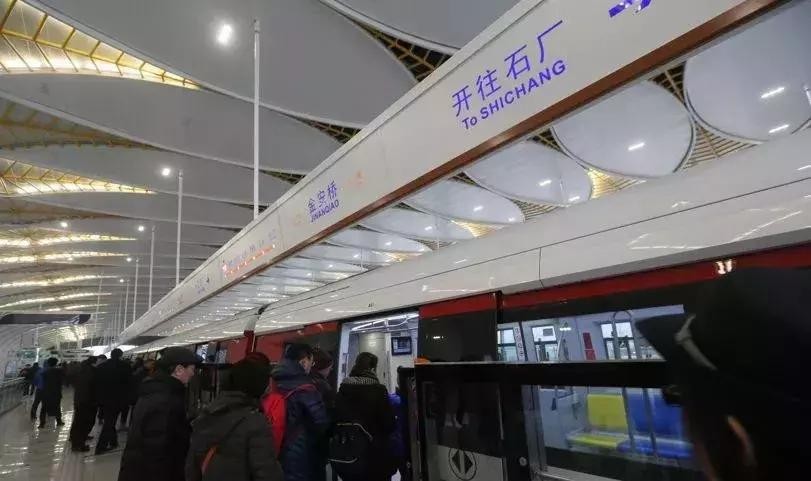 这条非比寻常的地铁列车,西起门头沟区石厂站,东至石景山区苹果园站,全长10.2公里,全线设站8座,全部为高架站,运行中磁浮列车会浮起大约8-10毫米。