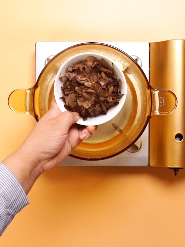 2. 锅中放入清水,加入枇杷叶,大火煮沸,转小火煮20分钟